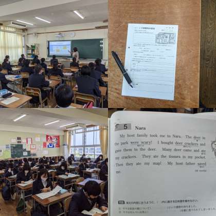 【英語】1分間、長文を黙読します。みんな静かに取り組んでいます。少しずつ長文に慣れていきます。(2組)