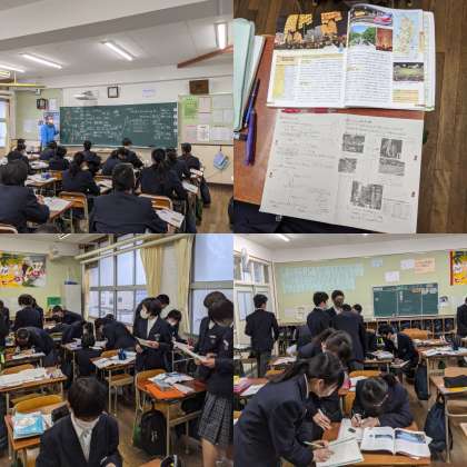 【英語】問題を解いて答えの確認をしています。読み取りの問題なので、色々な答えが出てきます。(2組)