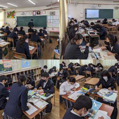 【社会】アメリカの工業について学んでいます。班になって地図を色分けしています。(2組)