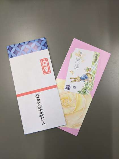 今年度は、新型コロナウィルス感染防止のためPTA行事がほとんど実施できなかったため、PTA会費の余剰金を学校備品(消毒薬・テントなど)の購入および全校生徒へ図書カード配布の形で返金させていただきます。