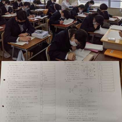 【理科】復習プリントをしています。みんなが苦手な個所をピックアップしたプリントです。(4組)