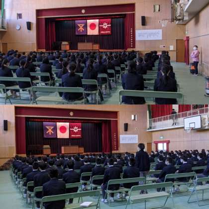1,2時間目に、3年生は卒業式の流れの確認をしています。この後、3、4時間目に卒業式予行をおこないます。明日の本番が楽しみです。
