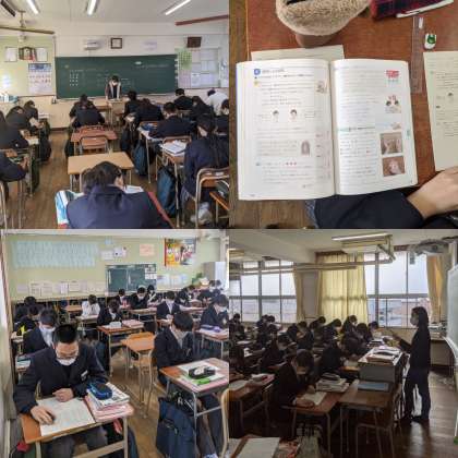 【英語】受け身の内容です。答えを確認したり、答えを前に書きに来たりしています。(3組)