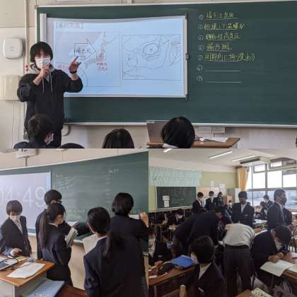 【理科】春の天気の特徴について学んでいます。冬・夏の気圧配置がよく出題されるようです。(4組)