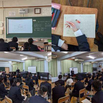 【数学】資料の活用の範囲で『箱ひげ図』の説明をしていました。今までには無い内容です。(4組)