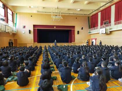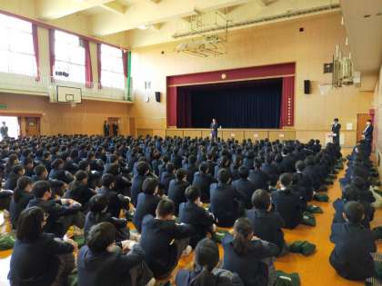 最初の挨拶から真剣に話を聞く姿は、さすが八阪中学校生です!