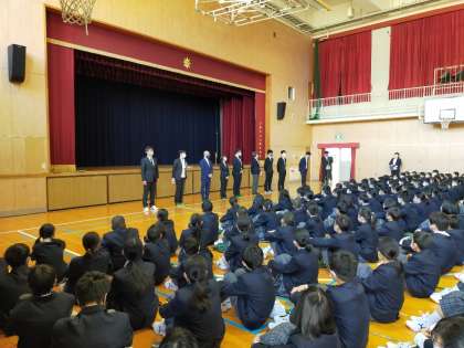 先生方の所属学年や担当クラスについて、校長先生から発表されました。