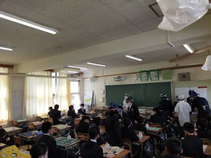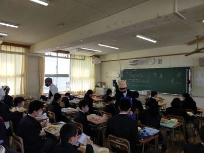中学校での初めての授業を終え、このあとは初めての給食です。