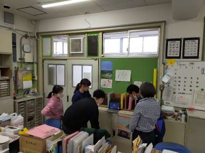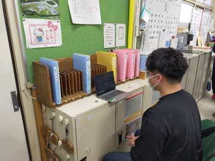 写真はその様子です。職員室と教室とをteamsでつなぎ、映像がとどくかどうかを試しています。