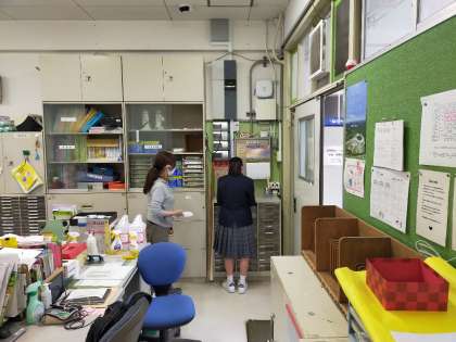 保健室の鳥山先生の指導のもと、1年生の保健委員さんが丁寧に連絡してくれました。
