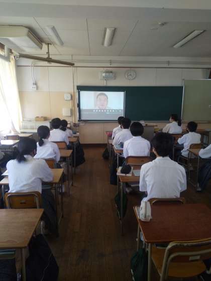 本日朝、オンラインによる全校集会がありました。校長先生から部活動はじめ、今後の学校生活について、また引き続き健康で安全に過ごすための留意事項についてのお話しなどがありました。その後、今日からスタートした教育実習生の先生の自己紹介がありました。生徒の皆さんはいつもの集会と変わらず「おはようございます。」としっかりとあいさつをしていました。