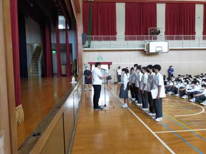 この春季総体に向けて、結果が出た部活動も、そうでなかった部活動も、一所懸命に取り組みました。結果が出て、見事表彰状をもらうことができた部活動や生徒の皆さんは、今後の生活を通してその価値をさらに高めてください。結果が出なかった部活動や生徒の皆さんは、努力を継続することを忘れず、できることから一つずつ取り組んでいきましょう。