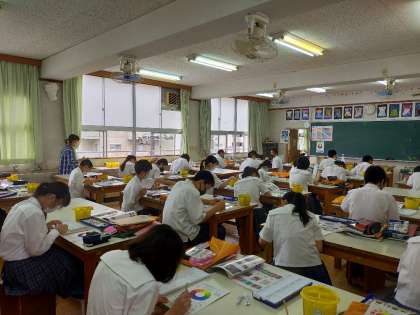 1年1組の美術科の授業と1年2組の国語科の授業の様子です。