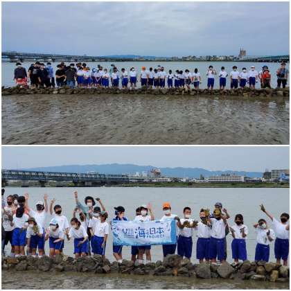 今回は八阪中の校区内にある海老江干潟という場所で石干見(いしひび)作りの体験をしました。