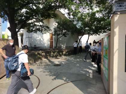 実習で来られている大教大院生も一緒に挨拶をしています。