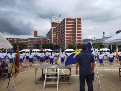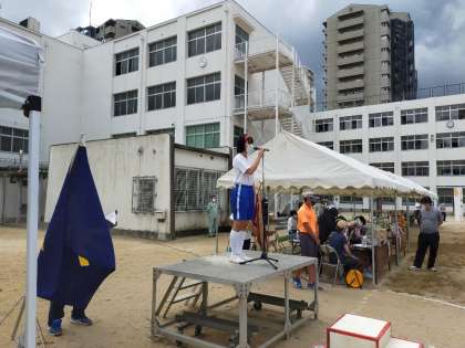 国歌・校歌演奏、生徒会による開会の挨拶の様子です。