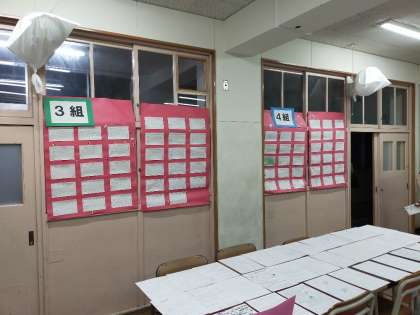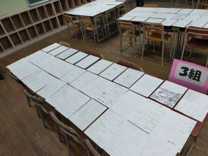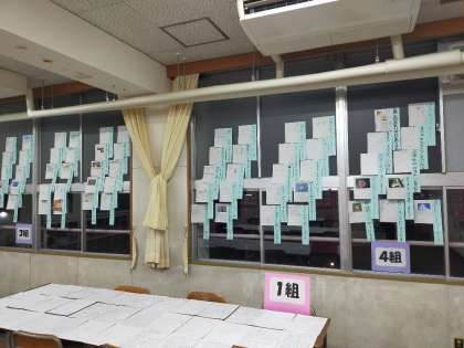 多目的室2の3年生の国語科と2年生の英語科の展示です。