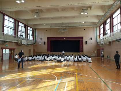 学年主任の乾先生より、プレゼン八阪の振り返っての講話がありました。