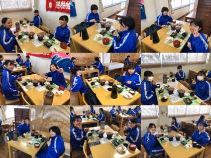 お昼の様子です。砂丘会館でご飯を食べています。