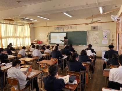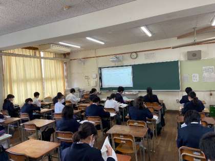 写真は、1年1組の社会科の授業と1年2組の数学科の授業の様子です。