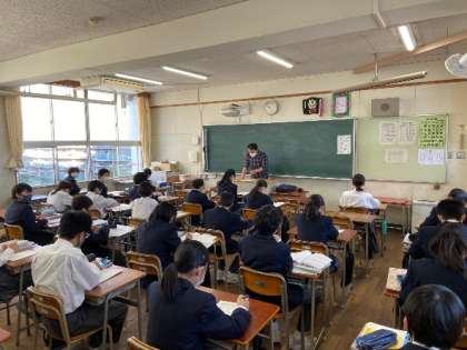1年3組の理科の授業と1年4組の英語科の授業の様子です。
