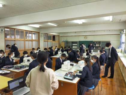本日3限目、被服室にて川崎先生が研究授業を行っています。