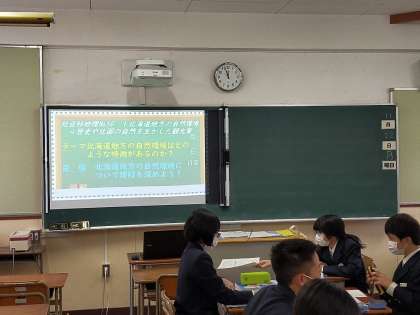 北海道地方について学ぶために、地形や気候についてのワークシートに取り組んでいます。