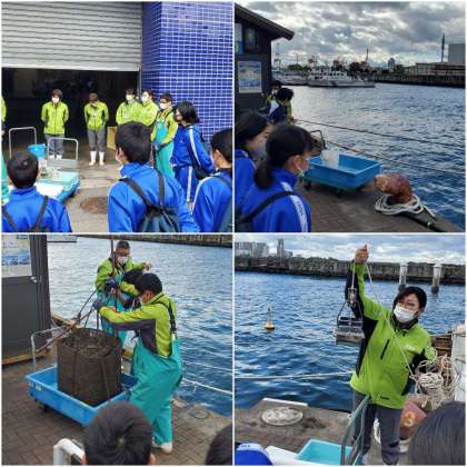 参加した生徒は全てが初めての経験でしたが積極的に活動に参加し、プランクトンネットを曳いたり、海泥に潜んでいる小さな生き物を見つけて集めたり、捕獲かごに入った生き物を採集したりしました。今回はカサゴやイシガニ、ヒカリウミウシなどの大きな生き物や、数種類の貝やホヤもたくさん採れました。プランクトンもたくさん見ることができ、とても充実した活動になりました。