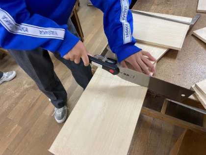 のこぎりを使用し製作しています。