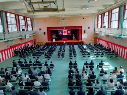 在校生歓迎の言葉の様子です。後輩を迎え入れる先輩の代表として、立派なスピーチをしてくれました。