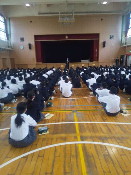 皆さんの周りではどうでしょうか、何もないのに叩かれたり、何かしろと言いつけられたりしていませんか。先生が気になることは、誰かが指導されているときに周りにいる人がニタニタ笑うことです。指導されている人を見て、面白いのですか。または指導している先生を「何怒っているんや」とばかにしているんですか。とても気になります。これも人権侵害、いじめにつながりますね。