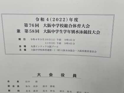 9月10日、11日、丸善インテック大阪プールにおいて、大阪学年別水泳競技大会が開催されました。