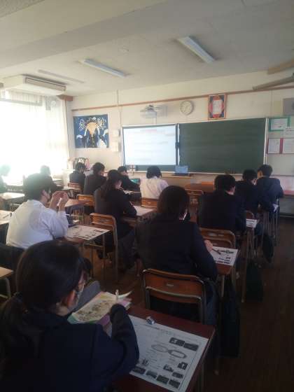 3年生対象にトヨタの会社の方々がリモートにてSDGsの取り組みについて講習を行っていただきました。