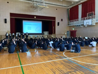 保健委員のみなさんによる事前アンケートの結果報告、お招きした助産師さんの講話を聞きます。