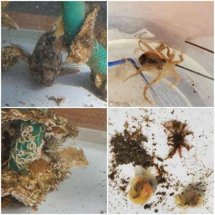 始めに海遊館の方からこれまでの調査の結果や大阪港の環境の傾向について説明を受けました。その後、岸壁に仕掛けておいた捕獲カゴを回収し、その中や周辺に付着した生き物を採集・観察しました。2月は水温も低く、生物の種類が少ないと聞いていましたが、今回はアミメハギの稚魚やメバル、タコの赤ちゃんも見つけることができました。他に小さな生き物を、みんながどんどんと発見してくれました。とても意義深い時間になったと思います。