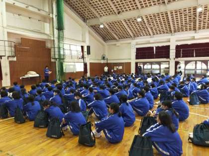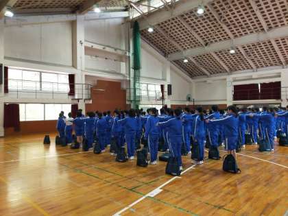 朝食後、清掃活動、部屋の点検を終え、次の活動のために体育館に集まりました。