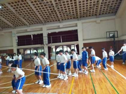 クラス対抗長縄大会に向けて、1組と2組が練習をしています。