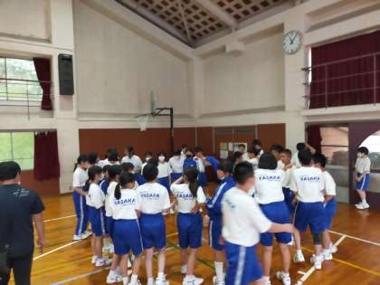 クラス対抗長縄大会、3組のミーティングの様子です。