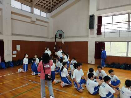 クラス対抗長縄大会、4組のミーティングの様子です。