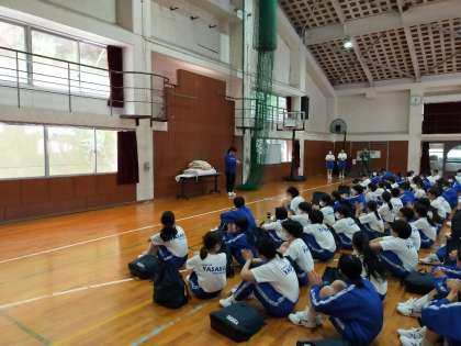 クラス対抗長縄大会の閉会式の様子です。