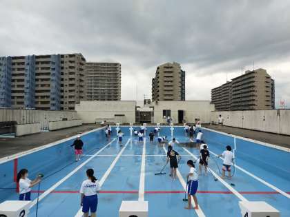 プール清掃以外にも、実は見えないところで誰かが頑張ってくれています。今回手伝ってくれた体育委員・女子バスケットボール部・野球部の皆さん、本当にありがとうございました。