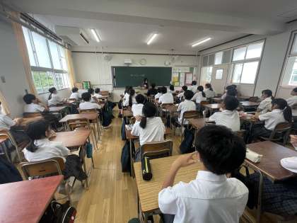 1年生は5時間目にキャリア学習をしました。本日から始めるということで、担任と副担任から自身の経験を話してもらいました。