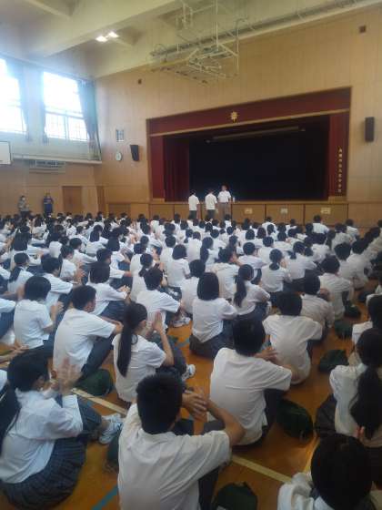 表彰式がありました。陸上部の生徒です。おめでとうございます。
