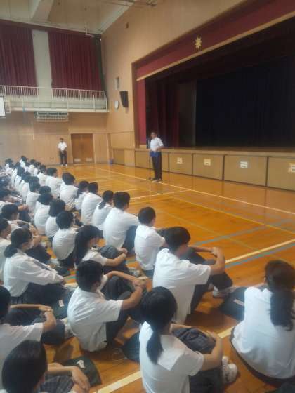 終業式です。校長先生のお話と生活指導の先生のお話です。
