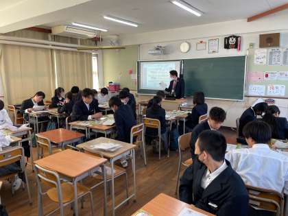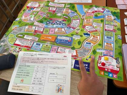 今日は、三年生の家庭科の授業で、第一生命から来ていただき、ライフサイクルバランスの授業をしていただきます。