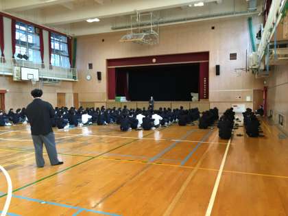 2年生の学年集会です。職場体験での振り返りも含め、竹内先生と中森先生からお話がありました。共通して話されていたのが「自分で考えて行動する」ということです。。AI化が進む現代社会ではその必要性がさらに増し、自分で考えてアイディアを出して行動に移せる人材が求められるようになるでしょう。その訓練のために学校生活があるのです。今の皆さんの仕事は期末テストに向けて準備をすることです。自分が納得できる成果を得るためにどんな準備をしていくのかアイディアを出し、行動に移していきましょう!!