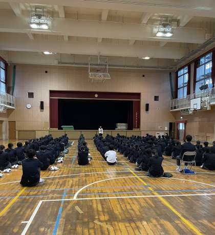 今日は、3年生の学年集会がありました。石塚先生から、3学期までにできることのお話がありました。