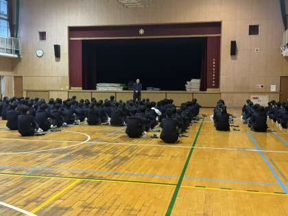 厳しい寒さと降水により、今週も体調不良者が多いことが気になりました。3学期も百人一首大会、校外学習、スポーツ大会と行事がたくさんあります。「体調不良で参加できなかった・・・」ということがないようにもう一度自身の体調管理を徹底してほしいと思います。