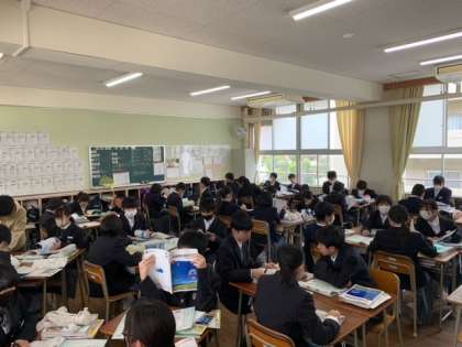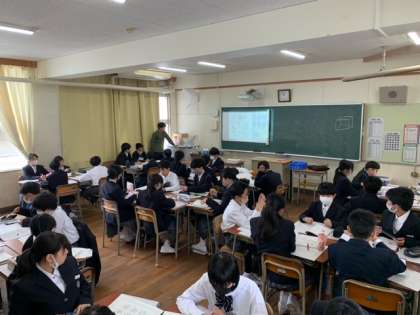 写真上から社会科、技術科の授業です。主体的・対話的深い学びを実践しています。