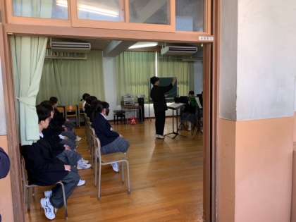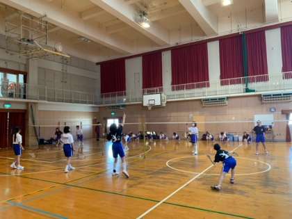 写真上からバトミントン部、卓球部、吹奏楽部の様子です。